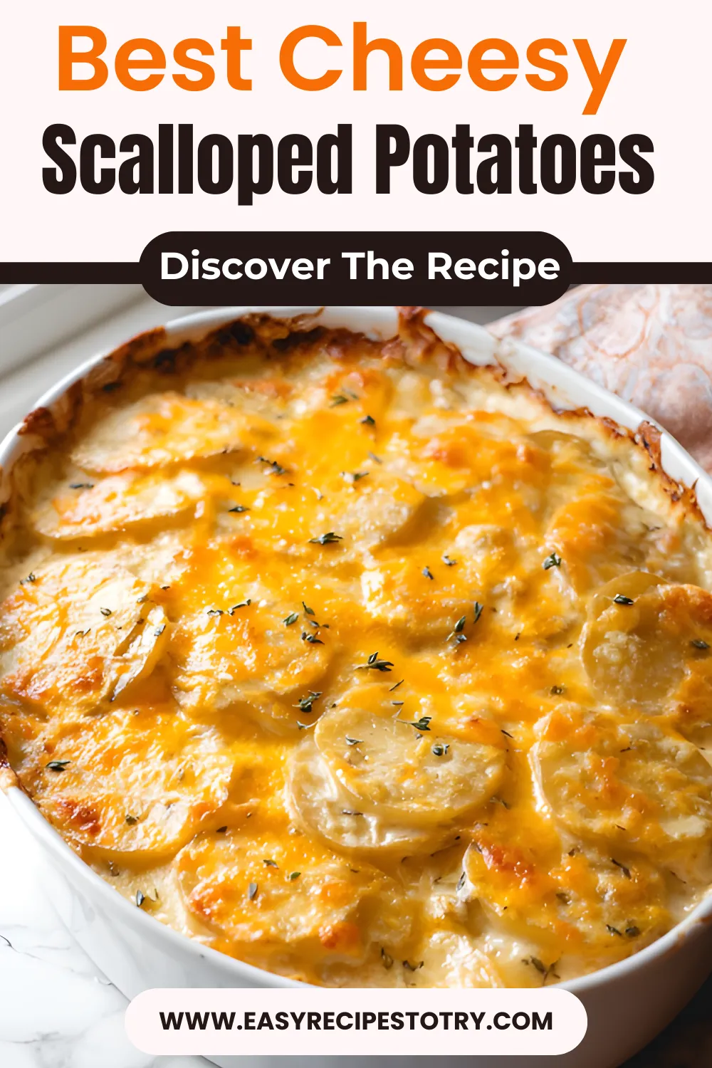 Traditional scalloped potatoes use a cream sauce, while au gratin includes cheese. This recipe combines both—creamy sauce with a cheesy topping—making it a delicious hybrid!